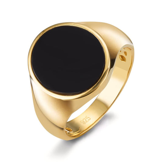 Fingerring Edelstahl Tigerauge gelb IP beschichtet