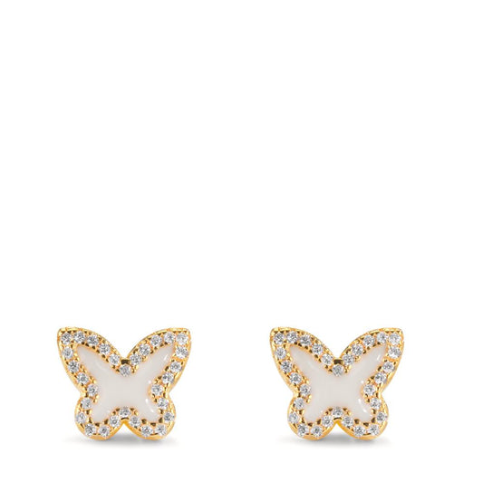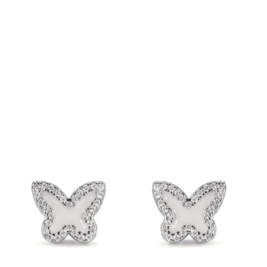 Ohrstecker Silber Zirkonia 32 Steine, rund rhodiniert Schmetterling