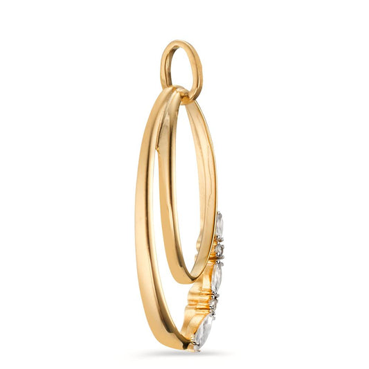 Pendentif Or jaune 9K Zircone 5 Pierres perle d'eau douce blanc, 7 mm Ø16 mm