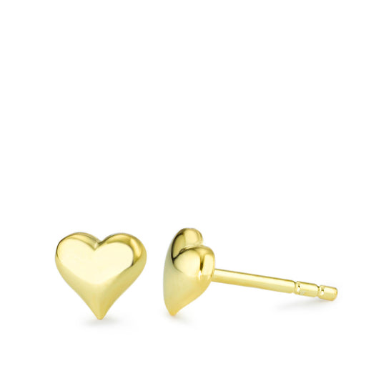 Clous d'oreilles Or jaune 18K Zircone 2 Pierres Bicolore Coeur Ø5.5 mm
