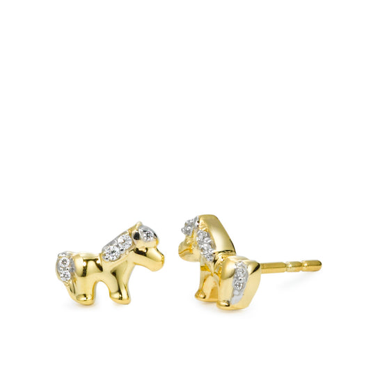Clous d'oreilles Or jaune 9K Zircone 10 Pierres Cheval