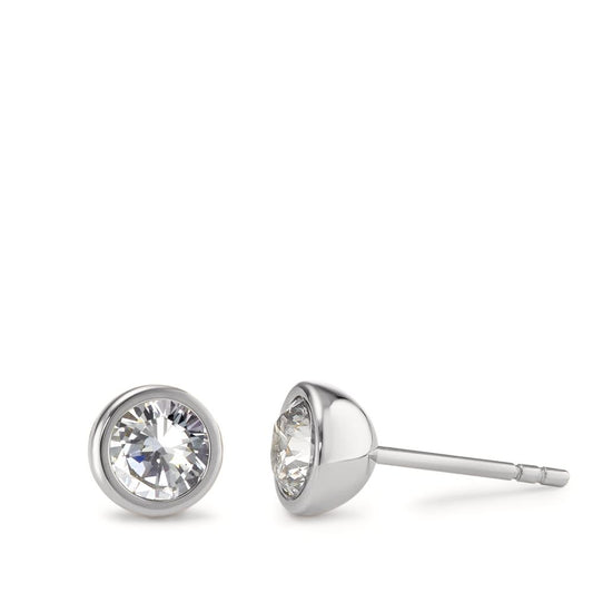 Clous d'oreilles Argent Zircone Rhodié Coeur Ø6 mm