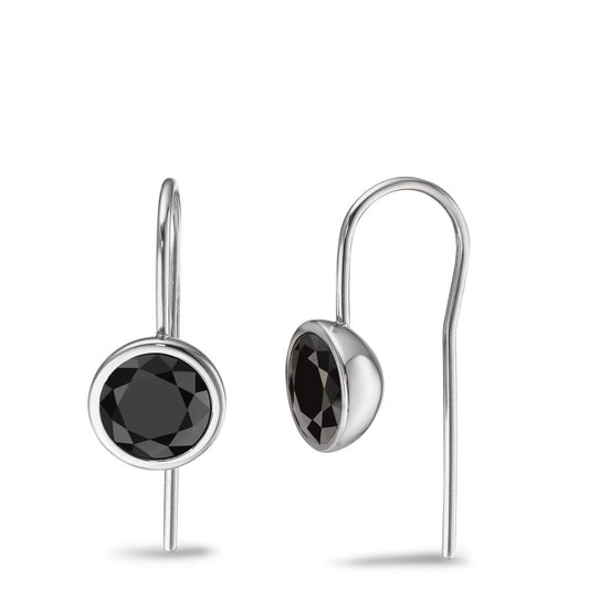 Pendant d'oreilles Acier inoxydable Zircone noir, 2 Pierres 20 cm Ø9.5 mm