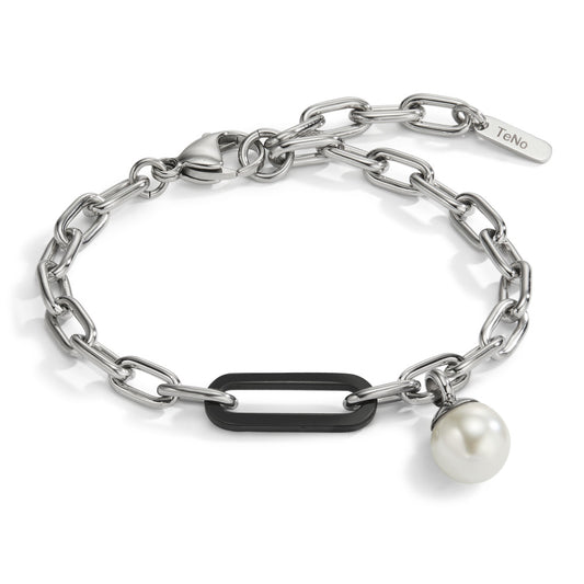 Bracelet Tissu, Acier inoxydable perle de culture blanc, 7 mm 16-21 cm Ø7 mm