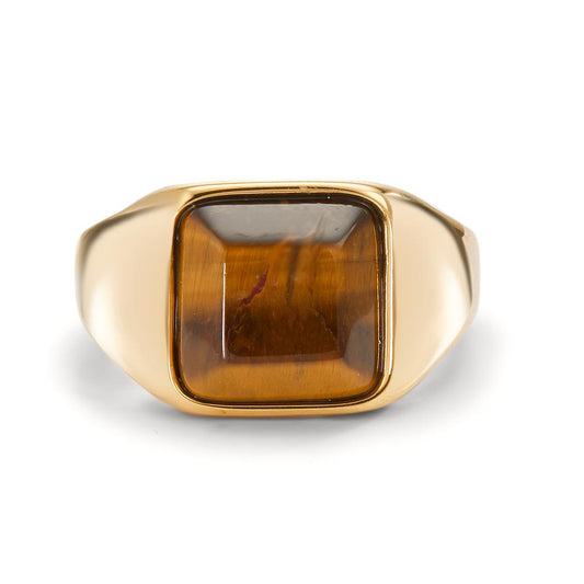 Bague Acier inoxydable L’œil de tigre jaune PVD