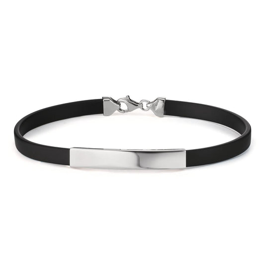 Gourmette avec gravure Argent, Cuir Rhodié 21 cm