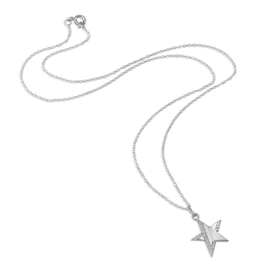 Chaînette avec pendentif Argent Zircone blanc, 2 Pierres Rhodié 43-47 cm Ø12 mm