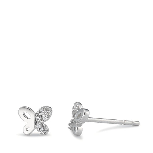 Clous d'oreilles Argent Zircone Rhodié Papillon Ø8 mm