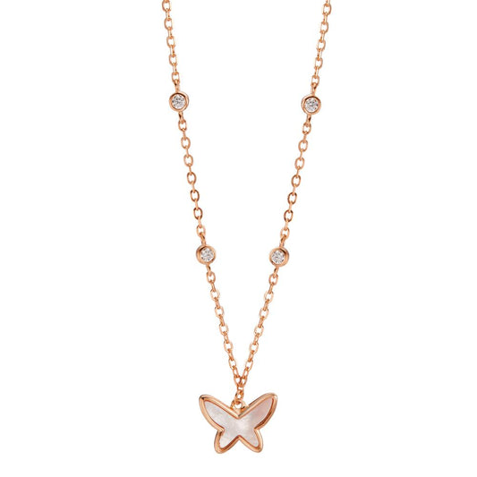 Collier Argent Zircone Rhodié nacre blanc Papillon 40-45 cm