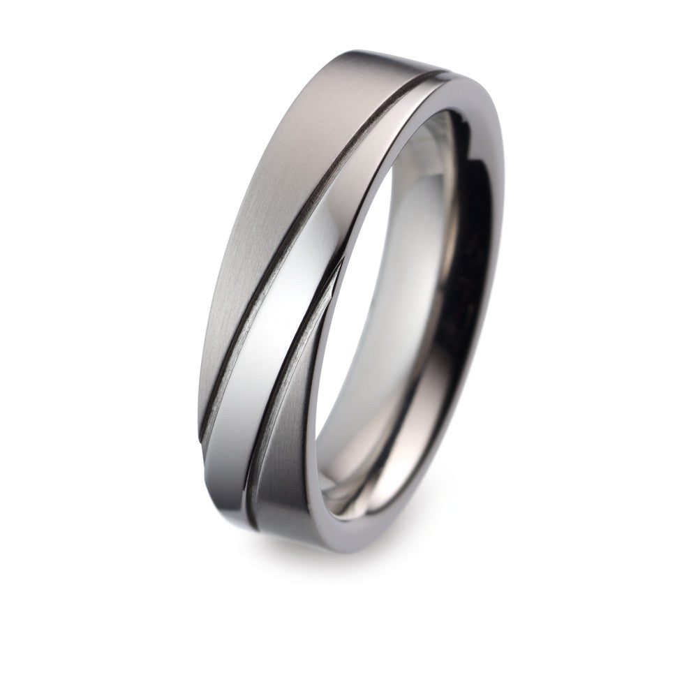 Alliance pour couple en titane, alliant modernité et élégance. Son design unique avec une finition brossée et polie crée un contraste subtil. Résistant, léger et hypoallergénique, ce bijou symbolise un engagement durable et raffiné. Parfait pour célébrer votre union.
