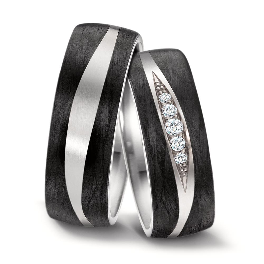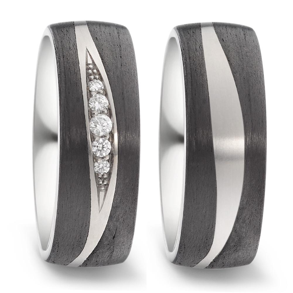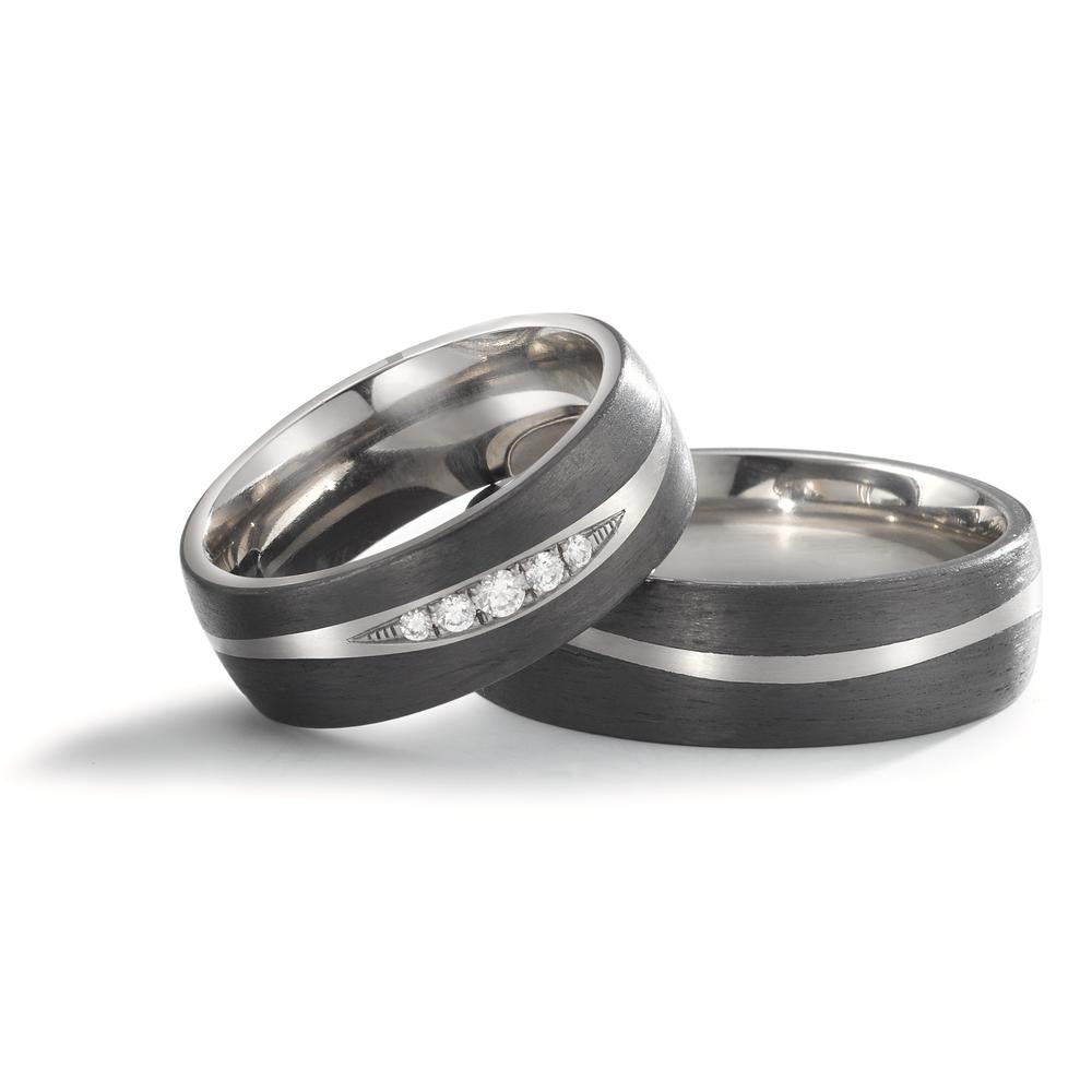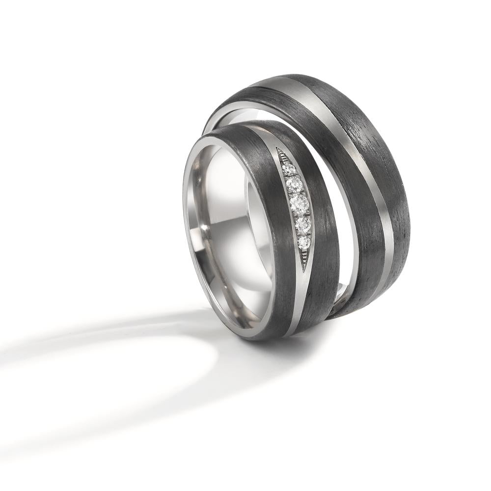 Bague de partenaire pour femme en titane et carbone, ornée de diamants étincelants. Un design moderne et élégant qui combine robustesse et raffinement, parfait pour symboliser un lien précieux. Confortable à porter au quotidien, ce bijou unique séduira par son style contemporain.
