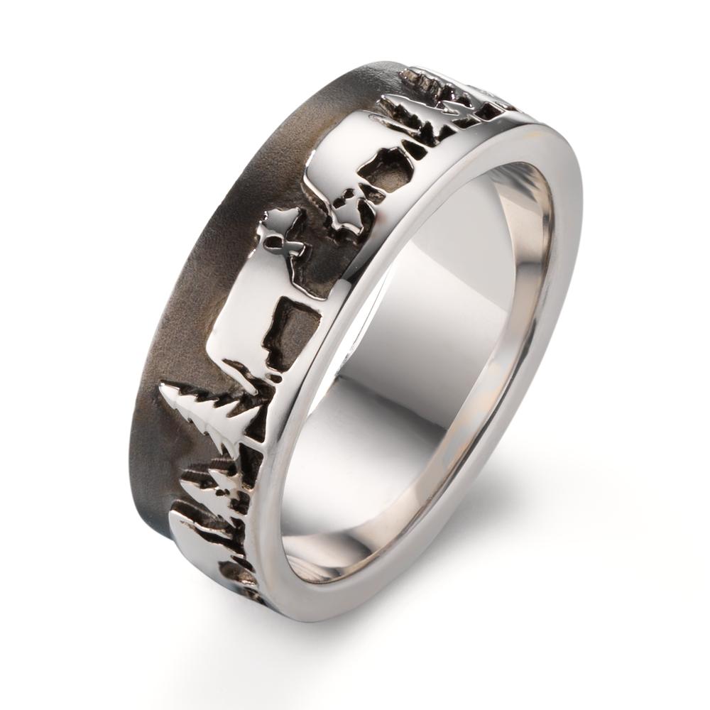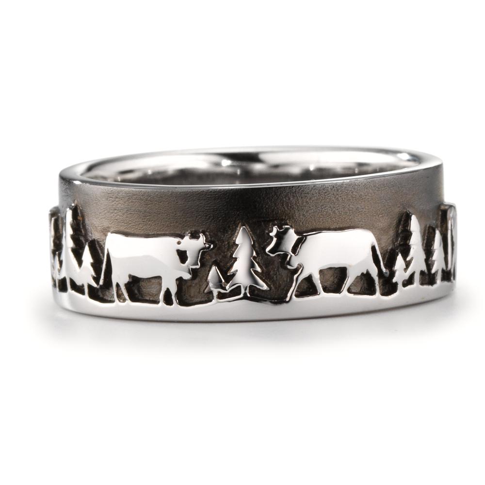 Bague en argent massif représentant une scène traditionnelle d'Alpaufzug. Le design détaille des vaches et des sapins, symbolisant la montée en alpage. Un bijou unique et authentique, parfait pour les amateurs de culture alpine et d’artisanat de qualité.