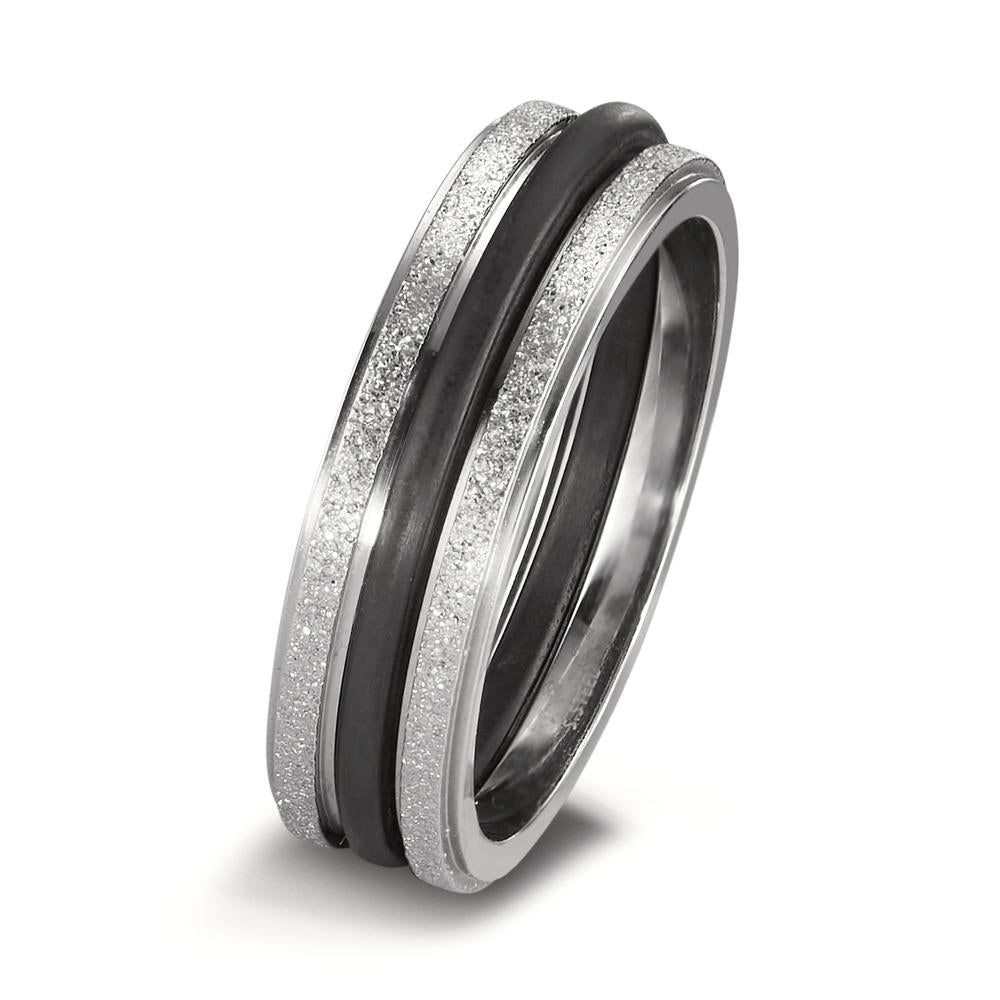 Bague pour femme alliant élégance et modernité. Fabriquée en acier inoxydable et carbone, elle offre une résistance exceptionnelle tout en restant légère. Son design contemporain avec une bande centrale noire en carbone fait de cette bague un accessoire unique et tendance, parfait pour toutes les occasions.
