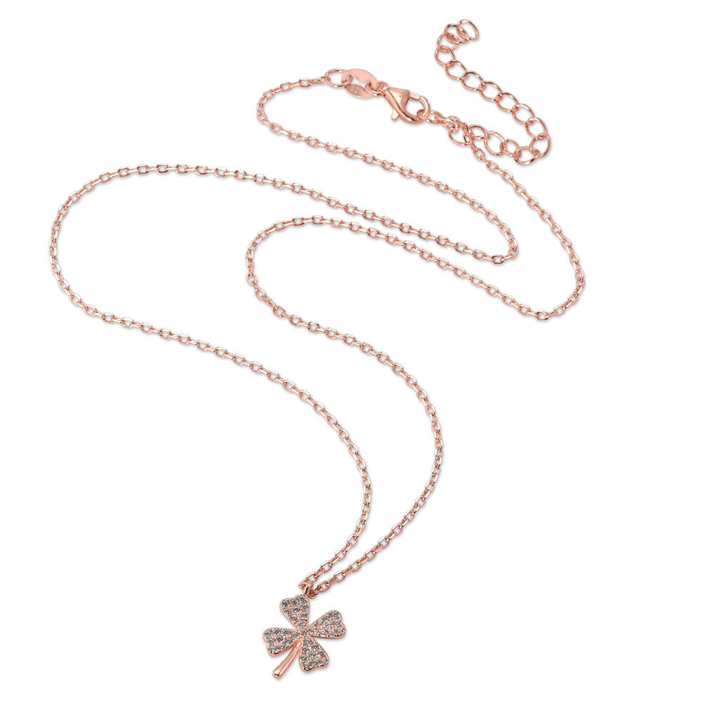 Chaînette avec pendentif Argent rosé Plaqué or Feuille de Trèfle 40-45 cm