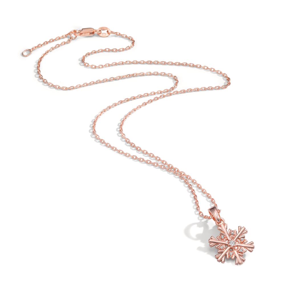 Chaînette avec pendentif Argent Zircone 7 Pierres rosé Plaqué or Flocon de Neige 40-42 cm Ø13 mm