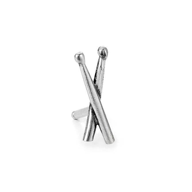 Boucle d’oreille pour homme en argent, design original en forme de baguettes de batterie. Un accessoire unique pour les amateurs de musique, alliant style et passion. Élégant et discret, parfait pour un look moderne et dynamique. Vendu à l'unité.