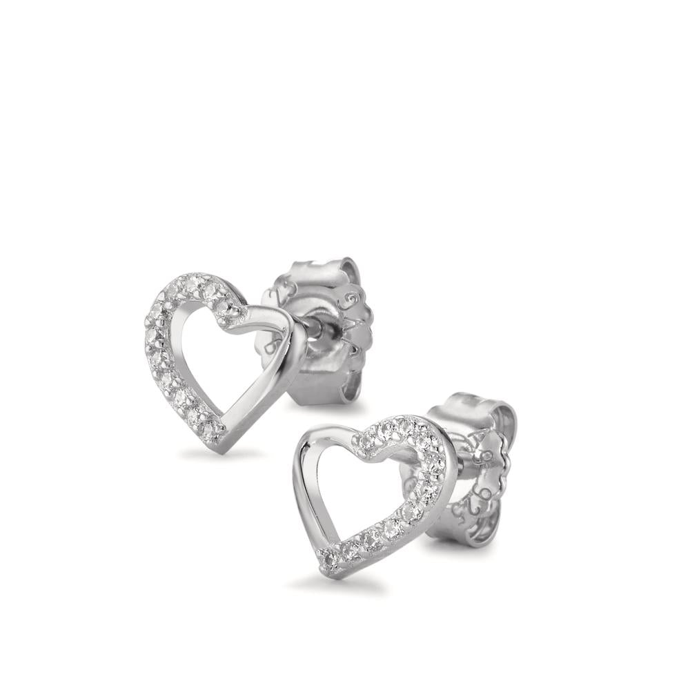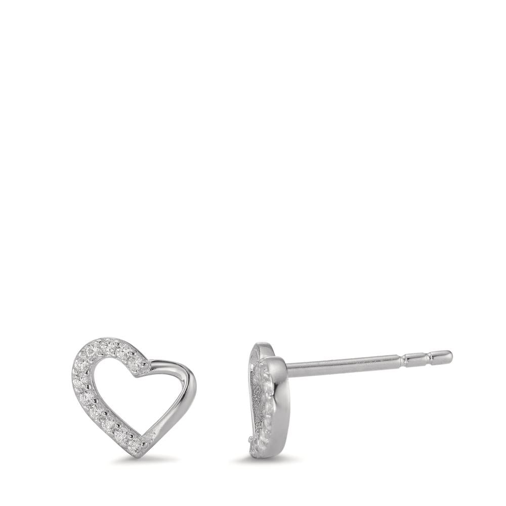 Boucles d'oreilles pour femme en argent, délicatement ornées de zircones scintillantes en forme de cœur. Élégantes et raffinées, ces puces d'oreilles apportent une touche romantique et brillante à tous vos looks, parfaites pour toutes occasions.
