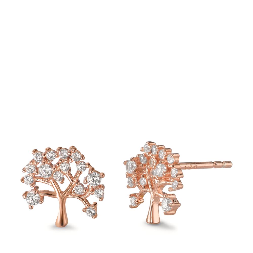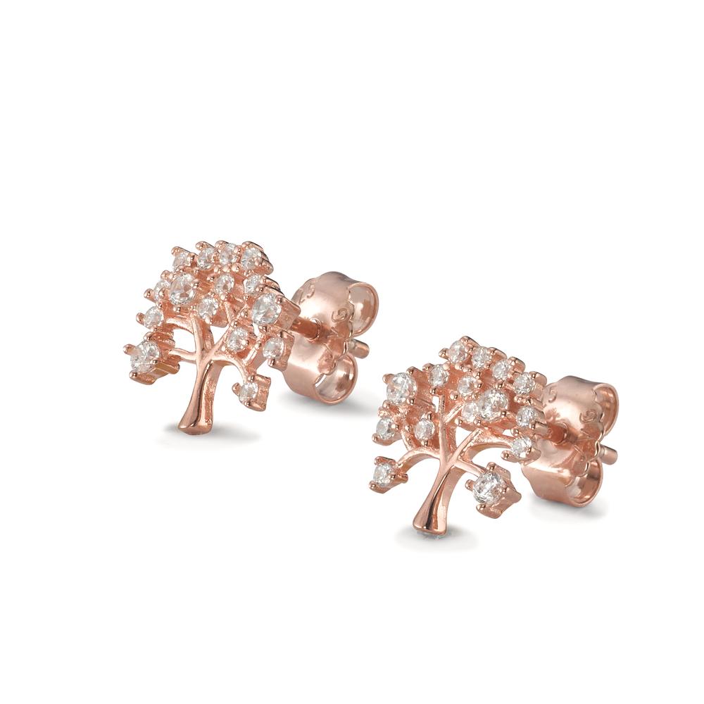 Clous d'oreilles Argent Zircone rosé Plaqué or Arbre de la vie Ø10 mm