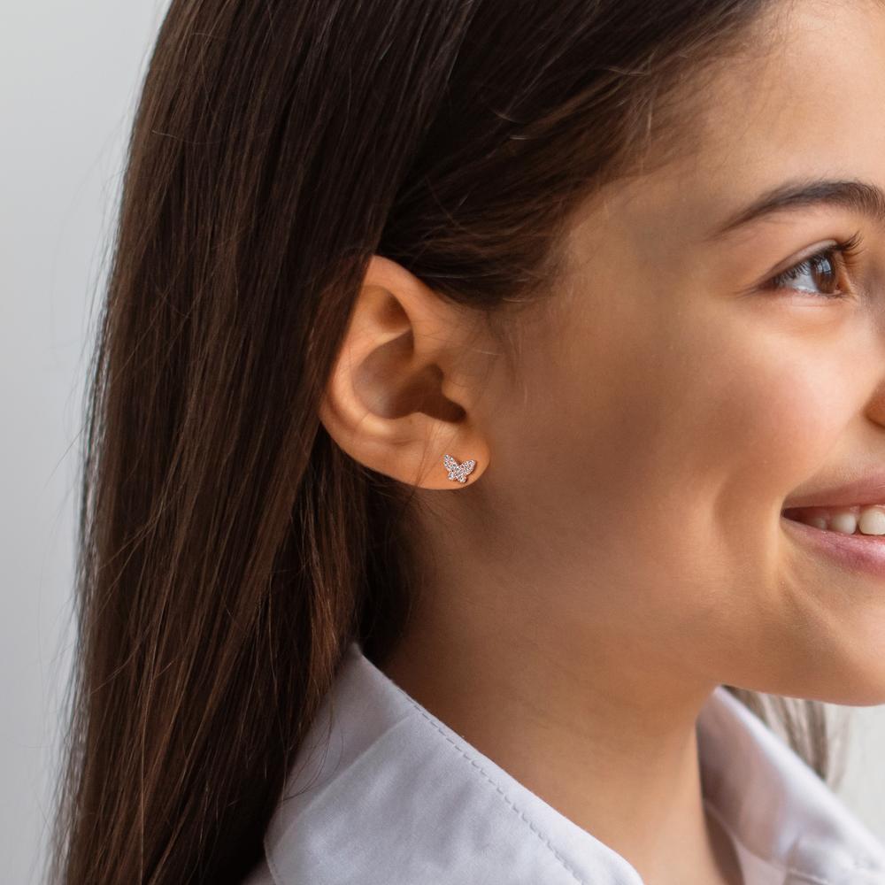 Boucles d'oreilles pour femme en argent sterling, ornées de zirconia étincelants en forme de papillon. Élégantes et délicates, ces puces apportent une touche de fraîcheur et de légèreté à votre style quotidien. Parfaites pour un look chic et féminin au quotidien.