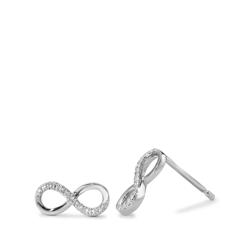 Boucles d'oreilles pour femmes en or blanc 585 élégamment façonnées en symbole infini, ornées de diamants scintillants. Un bijou raffiné et intemporel, parfait pour sublimer toutes vos tenues avec une touche de brillance et d'élégance discrète.
