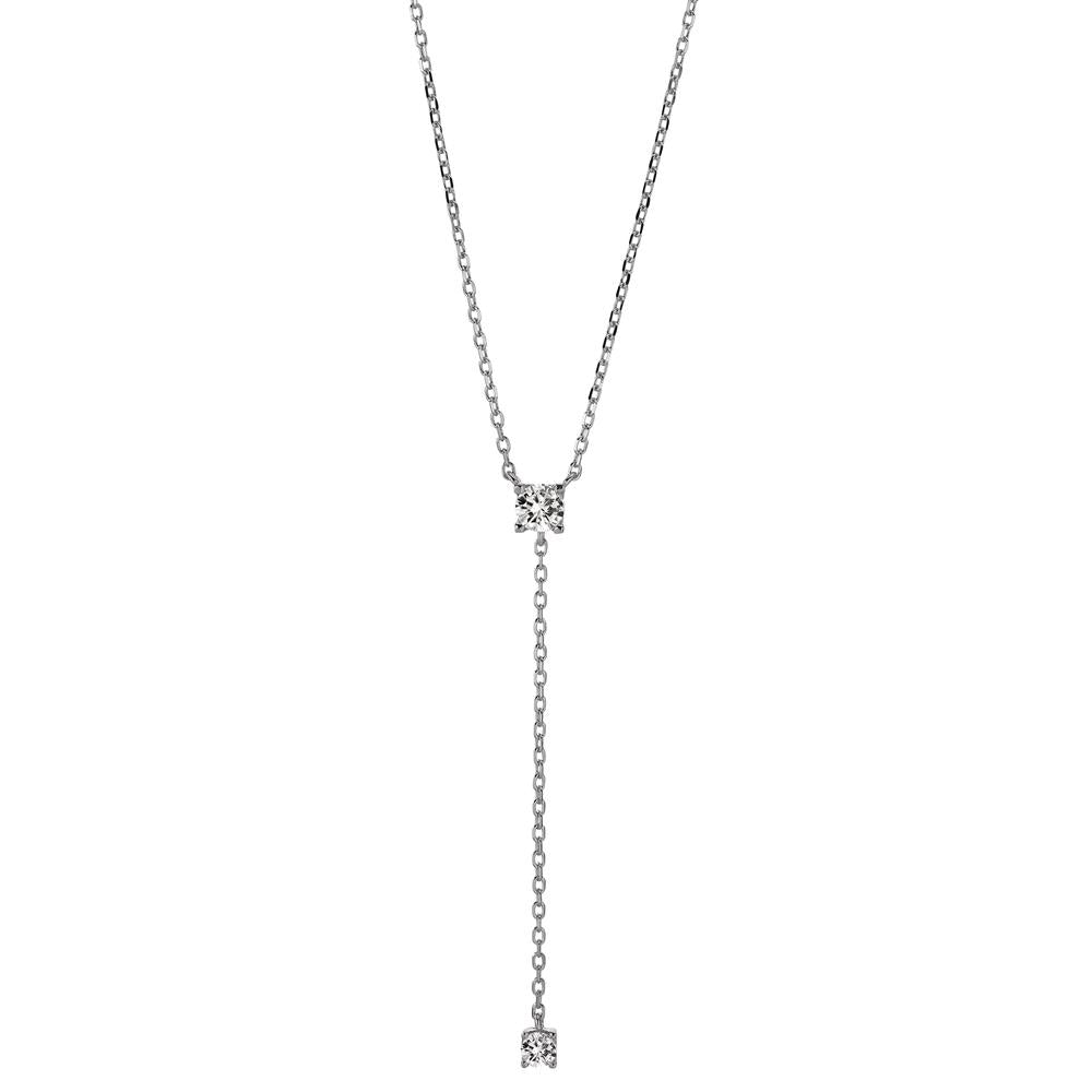 Collier pour femme en argent élégant, orné de deux zircones étincelantes. Son design raffiné avec chaîne fine et pendentif suspendu apporte une touche de sophistication et de légèreté. Parfait pour sublimer toutes vos tenues avec discrétion et élégance.