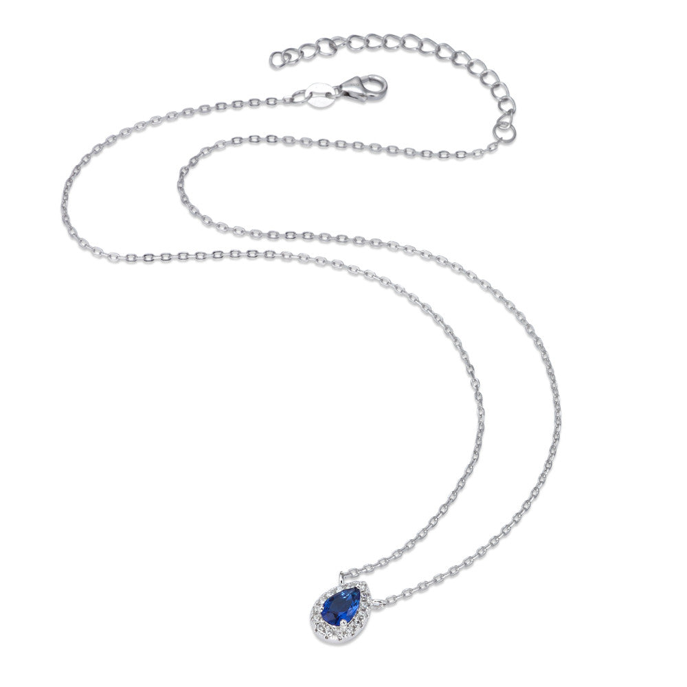 Collier élégant pour femmes en argent avec pendentif en forme de goutte. Orné d'un zirconia bleu profond au centre, entouré de petits zirconias blancs scintillants, ce bijou raffiné apportera une touche de sophistication et d'éclat à toutes vos tenues.