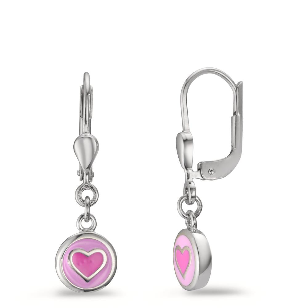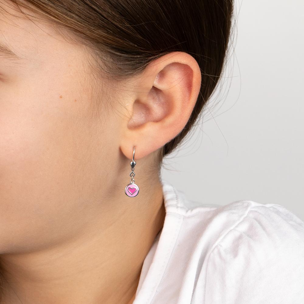 Boucles d'oreilles pour filles en argent ornées d'un charmant cœur rose. Ce design délicat et coloré apporte une touche de douceur et d'élégance. Idéal pour un cadeau ou pour sublimer le style quotidien des plus jeunes avec un bijou léger et tendance.