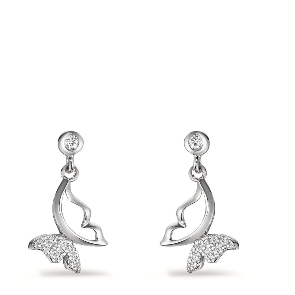 Pendant d'oreilles Argent Zircone 16 Pierres Rhodié Papillon