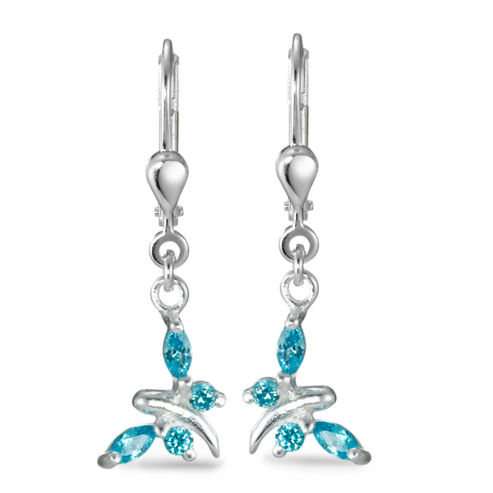 Pendant d'oreilles Argent Zircone bleu, 8 Pierres