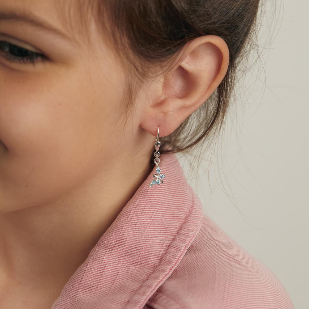 Boucles d'oreilles pour filles en argent fin, ornées de zirconia bleu éclatants. Ces délicats pendentifs ajoutent une touche de fraîcheur et d'élégance, parfaits pour un look jeune et lumineux au quotidien. Un cadeau idéal pour les petites princesses.