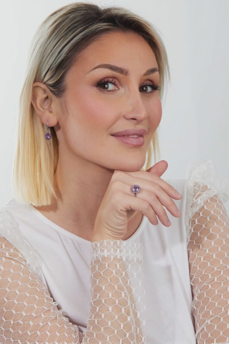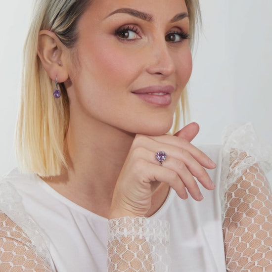Pendant d'oreilles Or blanc 18K Améthyste violet, 38 Pierres