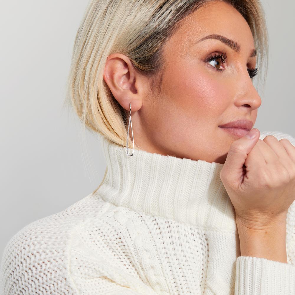 Boucles d'oreilles pour femme en or blanc 750, élégamment dessinées avec une forme goutte allongée. Chaque boucle est délicatement ornée de diamants scintillants, apportant éclat et sophistication. Un bijou fin et raffiné, parfait pour sublimer toutes vos tenues.