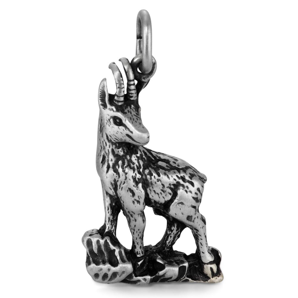 Pendentif pour homme en argent fin représentant un chamois debout sur un rocher. Ce bijou détaille avec précision l’animal, symbole de force et d'agilité, idéal pour les amateurs de nature et d’élégance masculine. Un accessoire unique et raffiné à porter au quotidien.