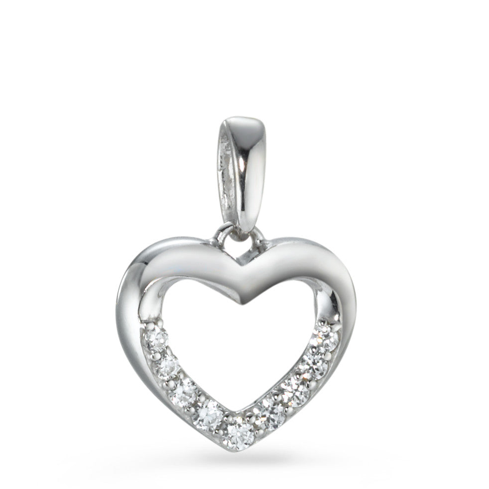 Pendentif Argent Zircone blanc, 9 Pierres Rhodié Coeur