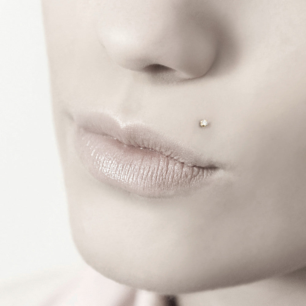 Piercing Or jaune 18K Zircone Ø2 mm