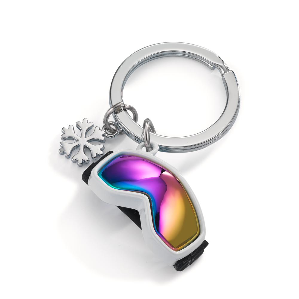 Porte-clés en métal avec un design unique de lunettes de ski colorées et un petit flocon de neige. Accessoire parfait pour les amateurs de sport d'hiver, alliant praticité et style. Compact, robuste et idéal pour ajouter une touche originale à vos clés.