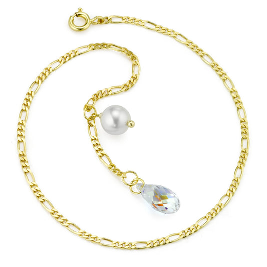 Enkelbanden Doublé Verguld [shining Pearls] wit, 8 mm 24-26 cm Ø6.5 mm