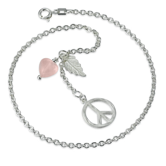 Enkelbanden Zilver Rozenkwarts Hart 24-26 cm