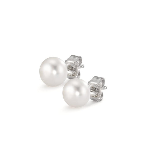 Oorknoppen Zilver Gerhodineerd zoetwater Parel wit, 8 mm