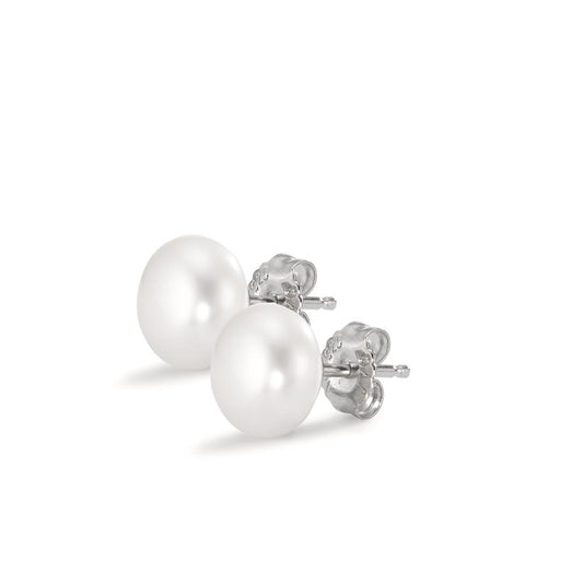 Oorknoppen Zilver Gerhodineerd zoetwater Parel wit, 2 Parels 9-9.5 mm
