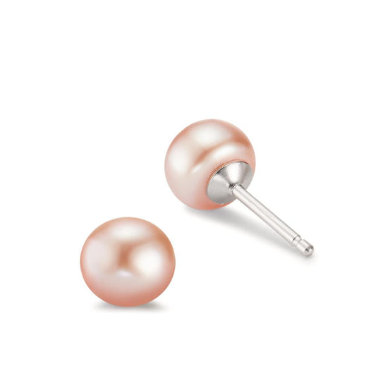 Oorknoppen Zilver Gerhodineerd zoetwater Parel roos, 2 Parels 7-7.5 mm