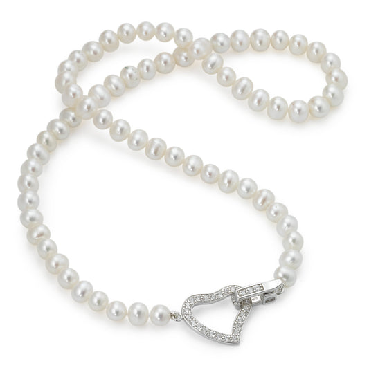 Collier Zilver Zirkonia zoetwater Parel wit Hart 45 cm