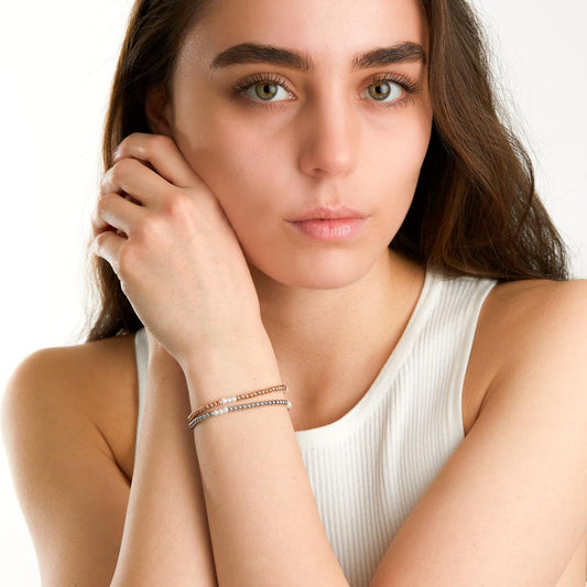 Armband Roestvrijstaal Rosé IP-gecoat Mossel Parel wit, 9 Parels, 3 mm 17-19 cm Ø3 mm