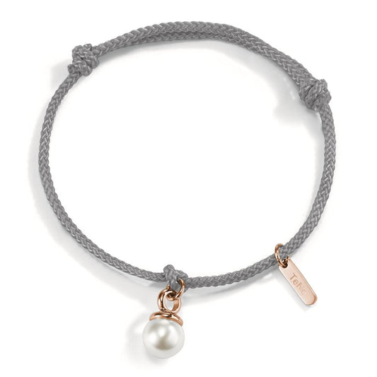 Armband Textiel, Roestvrijstaal Rosé IP-gecoat Mossel Parel wit, 7 mm 16-21 cm Ø7 mm