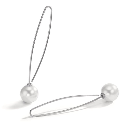 Oorbellen Roestvrijstaal, Carbon Zwart IP-gecoat Mossel Parel wit, 2 Parels, 7 mm Ø8 mm