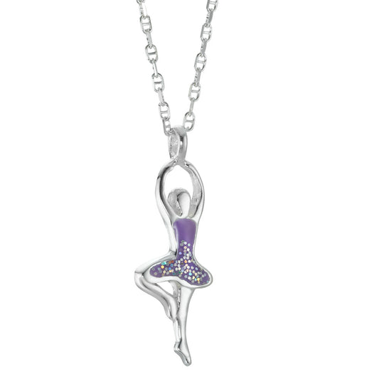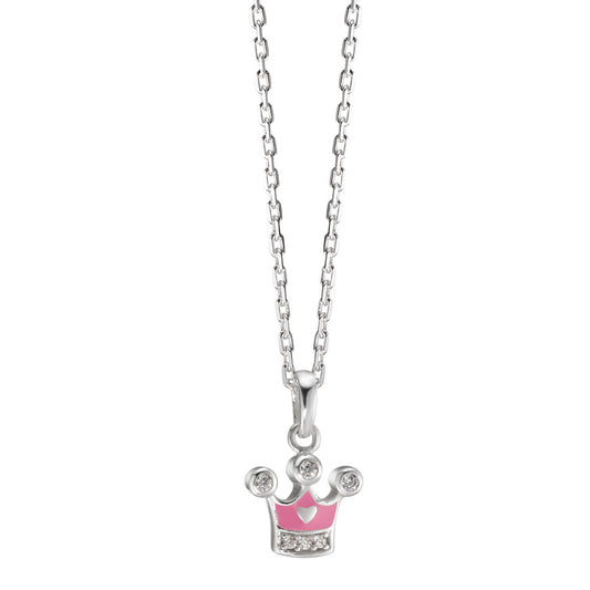 Collier met hanger Zilver Zirkonia 6 Steen Gelakt Kroon 36-38 cm Ø10 mm