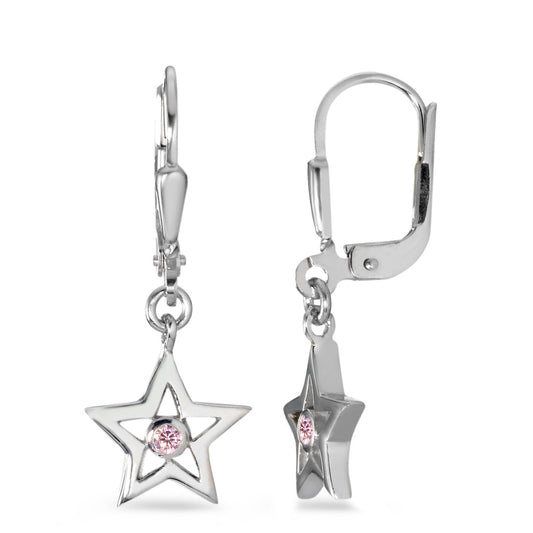 Oorknoppen Zilver Zirkonia roze, [Navetteschliff] Gerhodineerd