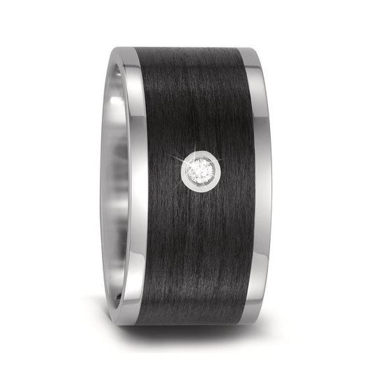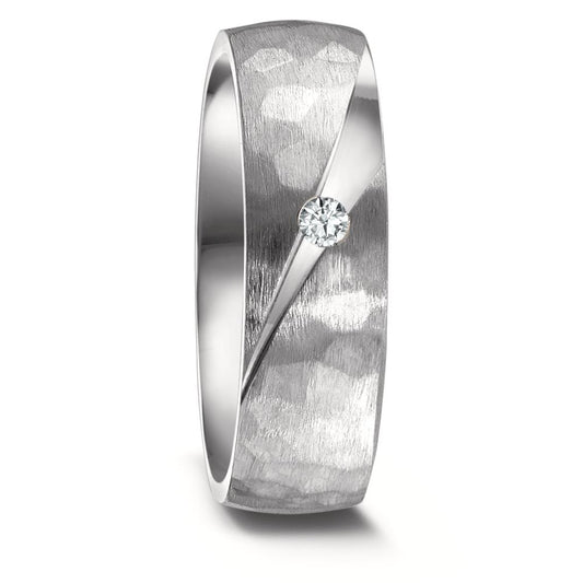 Partnerring Titanium, 585/14K witgoud Diamant 0.06 ct, 3 Steen, w-si