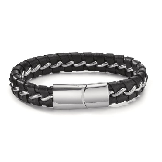 Armband Roestvrijstaal, Leder Gepatineerd 22 cm Ø6.5 mm