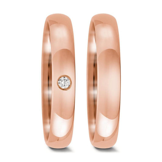 Partnerring Roestvrijstaal, 375/9K rood goud Diamant 0.02 ct, w-si